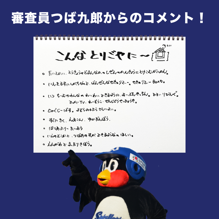 また日本全国のファンから長年親しまれてきたつば九郎であり、日本初の企画だからこそ、あえて特定のデザイナーに依頼せずに広く「つば九郎の家デザインコンテスト」として一般公募させていただくことに致しました。