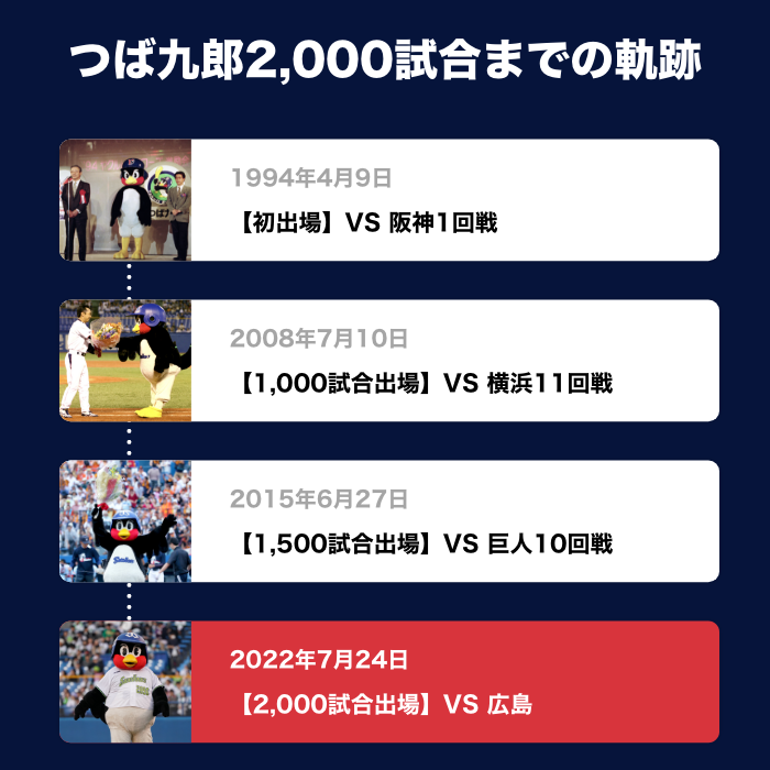 振り返ること約1年前……スワローズの球団マスコット「つば九郎」が2021年5月5日の阪神戦(神宮)で主催1900試合連続出場(球団スタッフ調べ)を達成しました。これによりプロ野球界は勿論、日本のプロスポーツ界でも前例がない2000試合連続出場記録が見えてきました。