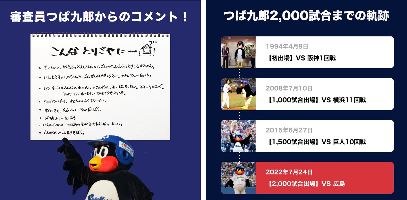 株式会社オープンハウスグループ(本社 東京都千代田区、代表取締役社長 荒井正昭、以下「当社」)は、2016年より東京ヤクルトスワローズ(以下「スワローズ」)のスポンサー、2018年よりトップスポンサーを務めております。スワローズの球団マスコットこと「つば九郎」が日本プロスポーツ史上初となる、主催試合(ホーム)での2000試合出場記録まで王手となりました。(※2022年7月24日 広島戦に記録達成予定)