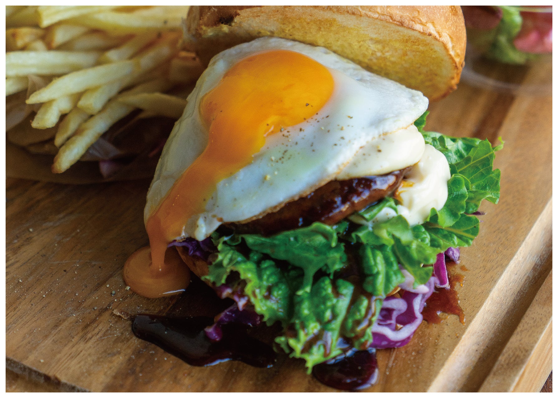 自然が豊かな町田薬師池公園四季彩の杜西園内にある44APARTMENT薬師池店では町田日本一醤油を使用した照り焼きバーガーが絶品だ。とろ〜り半熟卵と特製照り焼きソースの相性抜群。