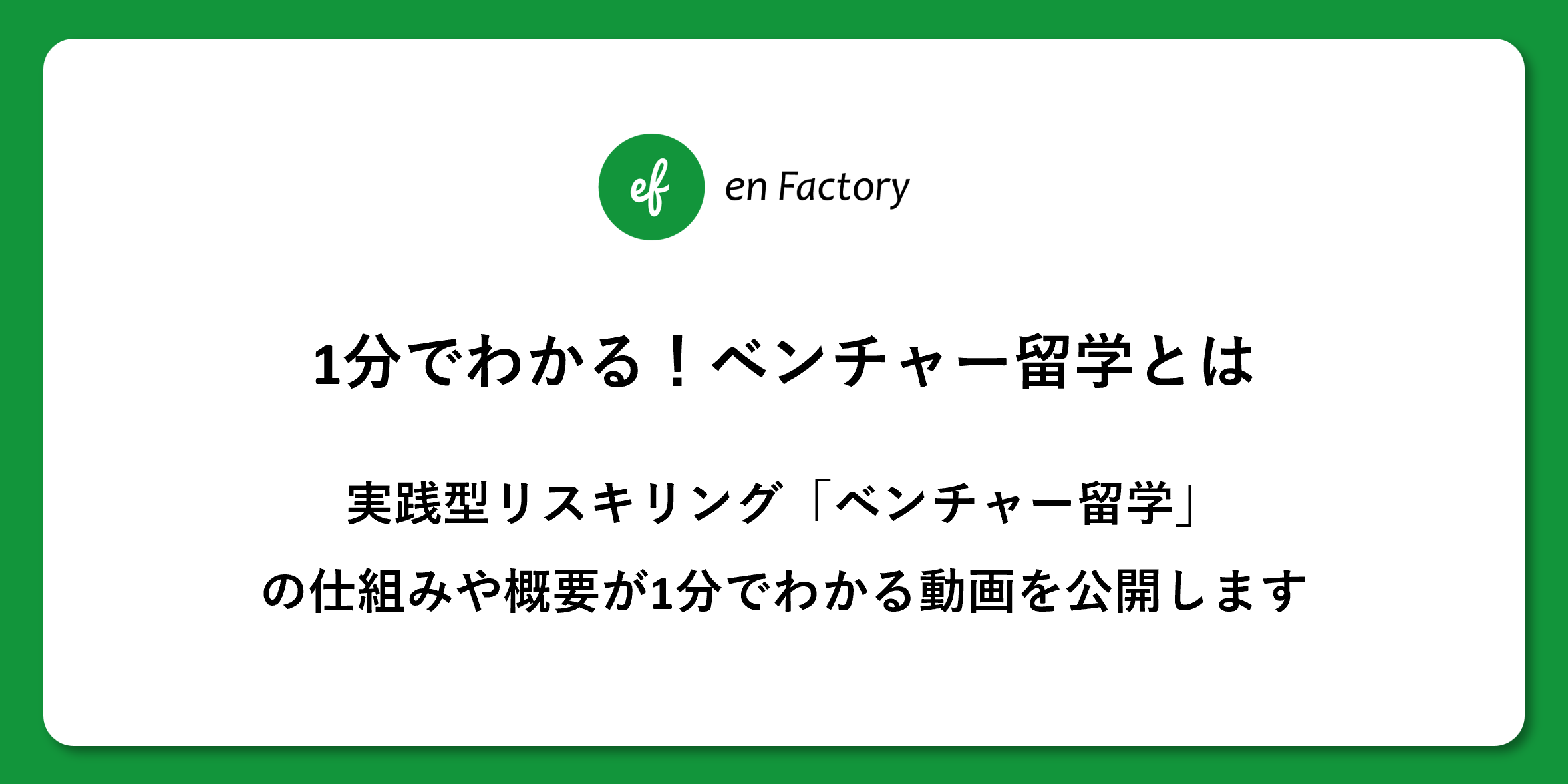 ベンチャー留学という新しい取り組みについて、仕組みや活動の概要をより広く皆さまに知っていただくため、この度「1分でわかる、ベンチャー留学」動画を公開しました。