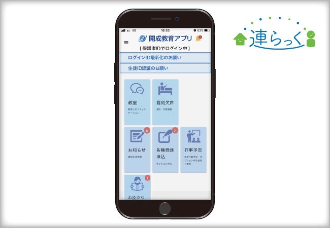 点数アップと大学受験に強い個別指導学院フリーステップ(株式会社 成学社)で使用している開成教育アプリに「連らっく」という名称でコミュニケーション機能を実装。アプリへのコミュニケーション機能の実装は保護者からの要望が多く、自社(グループ会社含む)開発。2022年4月18日より全教室配備となった。