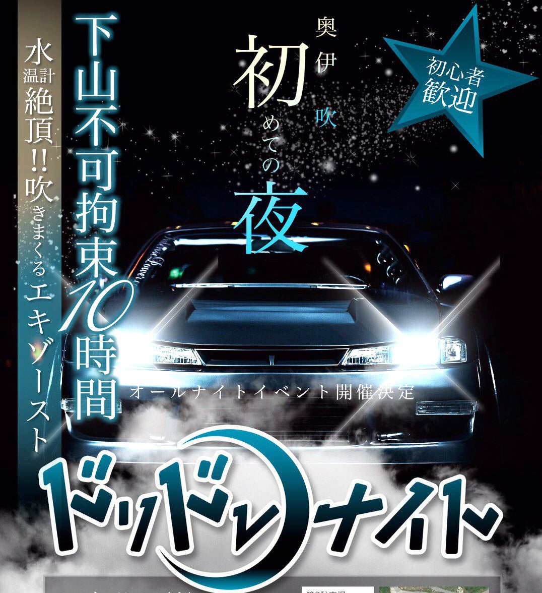 「暗闇の中でアクセル全開」!!「夜から朝まで続く」オールナイトのドリフトイベント「ドリドレナイト」を8月12日(土)夜に奥伊吹モーターパークで開催!