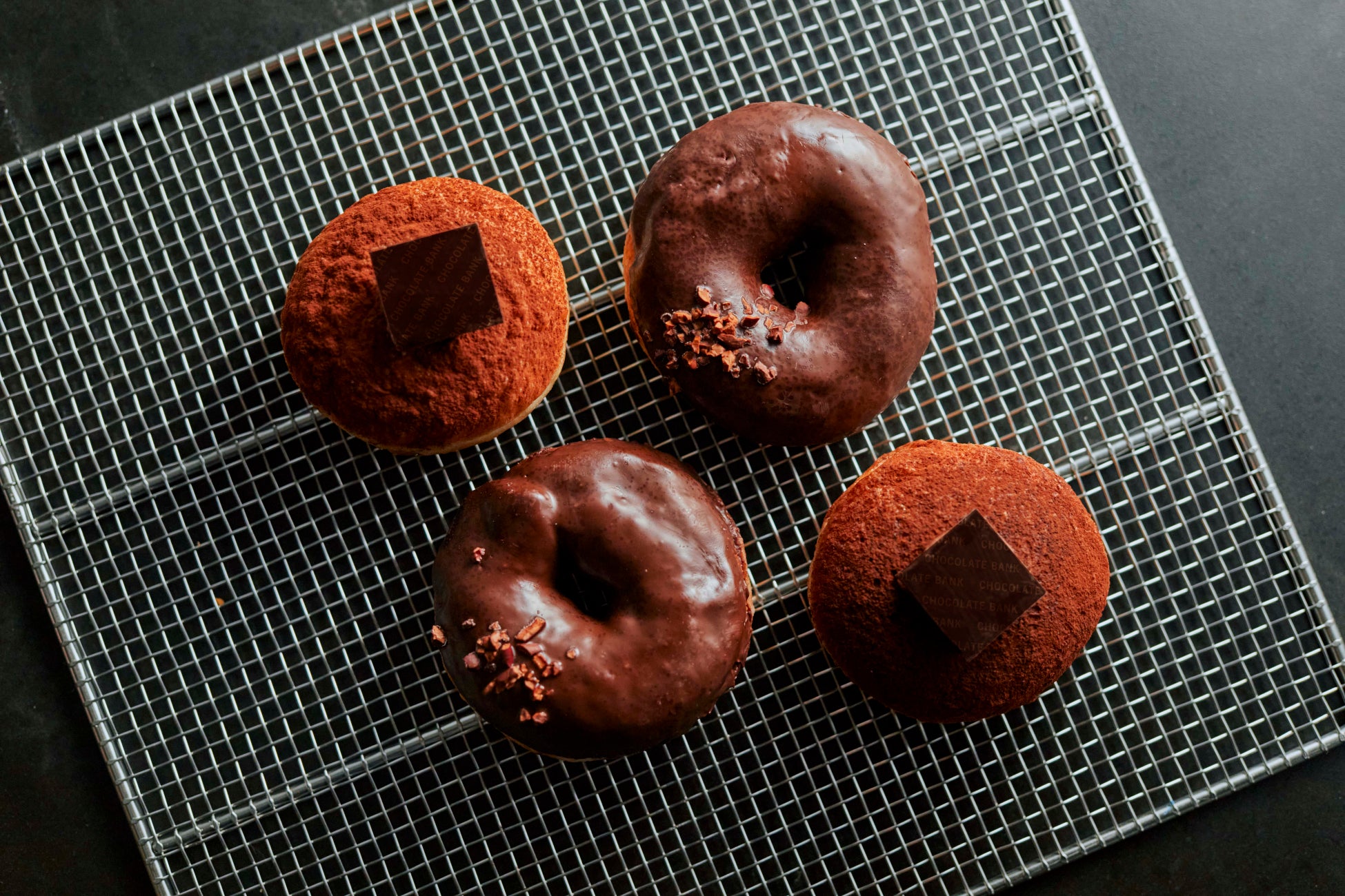 オイル、生地、クリームに、チョコレート、どれも植物性の100%ヴィーガンドーナツが登場します。シンプルながらこだわりの素材を使用し、ヴィーガンとは思えない豊かな味わいを表現しました。ダブルチョコレートとチョコクリームの2種。ダブルチョコレートは、コロンビアに構える自社管理農園のカカオから作る、香り高いビターチョコレートを使用しています。生地の発酵を見極め、揚げ方を追求することで、軽くてもっちり、食べ応えのあるドーナツに仕上げました。