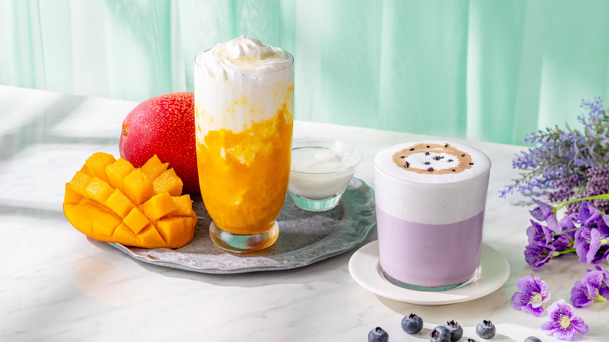 初夏を感じる猿田彦珈琲のシーズナルドリンク「ブルーベリーバイオレットフロラッテ」「マンゴーラッシーのフラッペ」5/13発売