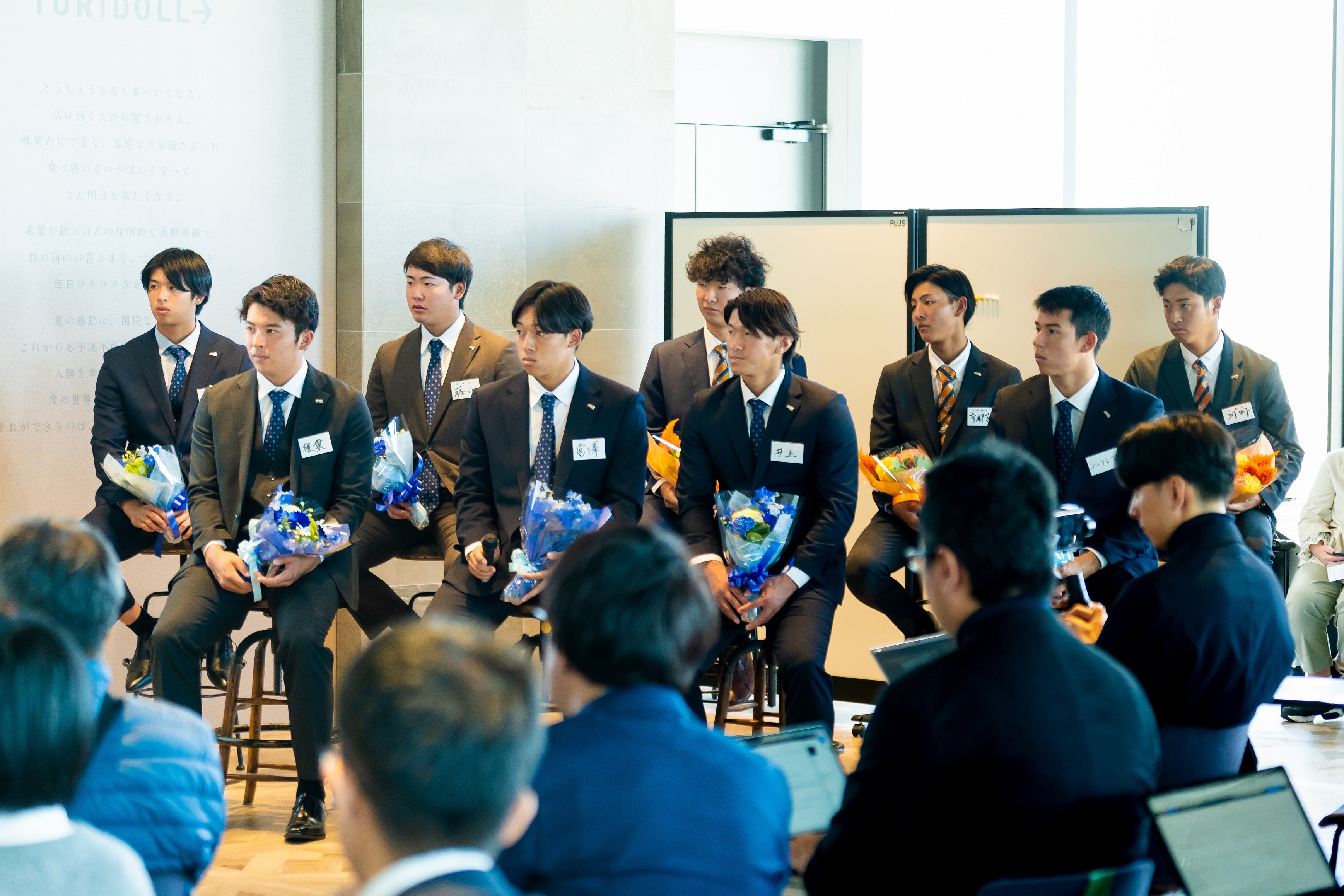 プロ野球やメジャーリーグでご活躍され、多くの野球ファンに感動を与えた藤川 球児氏と、1985年に焼き鳥店を創業以降、夢のアップデートを続け唯一無二のグローバルフードカンパニーを目指すトリドールHD社長 粟田 貴也から、ドラフト・育成指名選手に対して激励の言葉が送られました。