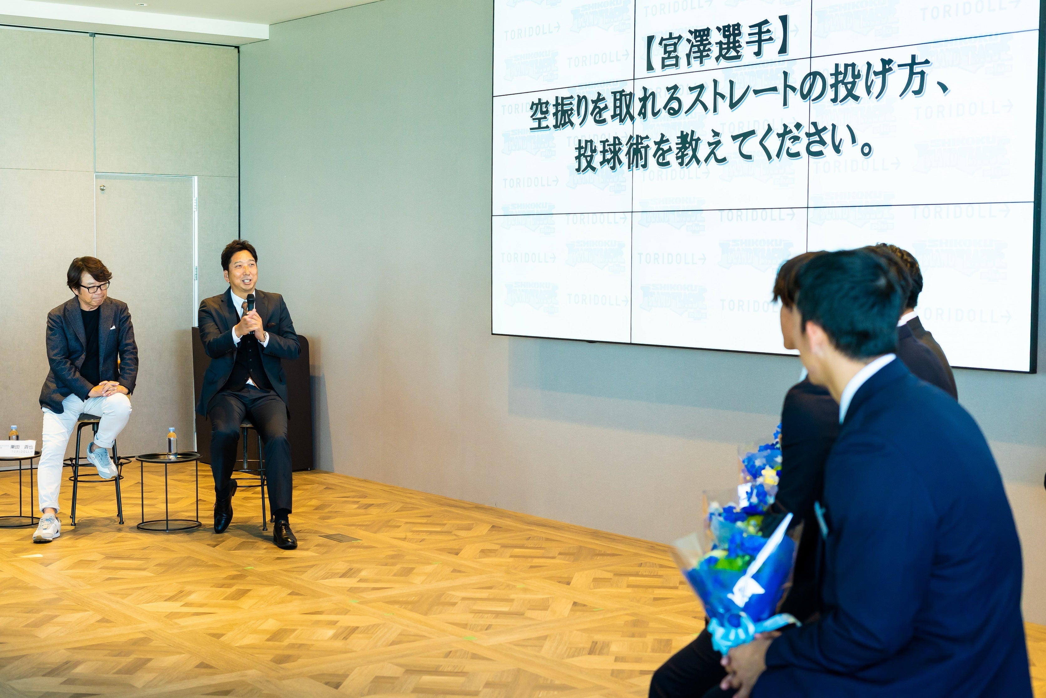 この度、プロ野球選手になりたいという夢を持ち、四国アイランドリーグで挑戦を続け、今年のプロ野球ドラフト会議にて、その切符を手に入れることができた9名の選手を激励するために「トリドールHD主催 四国アイランドリーグ plus ドラフト選手壮行会2023」を開催しました。四国アイランドリーグ plusから9名の選手がドラフト・育成指名を受けるのは過去最多の人数です。さらに、阪神タイガースや四国アイランドリーグなどでご活躍された野球解説者の藤川 球児氏をゲストに招き、ドラフト・育成指名選手、トリドールHD社長 粟田 貴也による特別対談も実施しました。