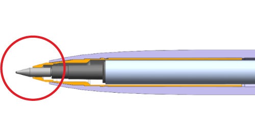 ・快適な書き心地だけでなく、ワンポイントの金属製のペン先がデザインのシャープさを際立て、より洗練された上質な印象を与えます。