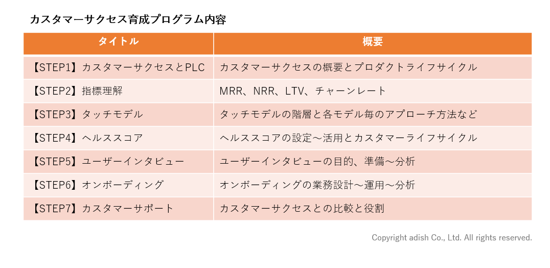 カスタマーサクセス育成プログラム詳細 https://cs-studio.adish.co.jp/service/training
