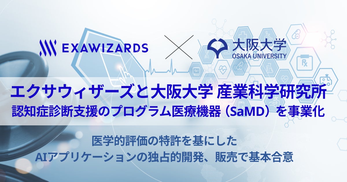 エクサウィザーズと大阪大学 産業科学研究所、 認知症診断支援のプログラム医療機器(SaMD)を事業化