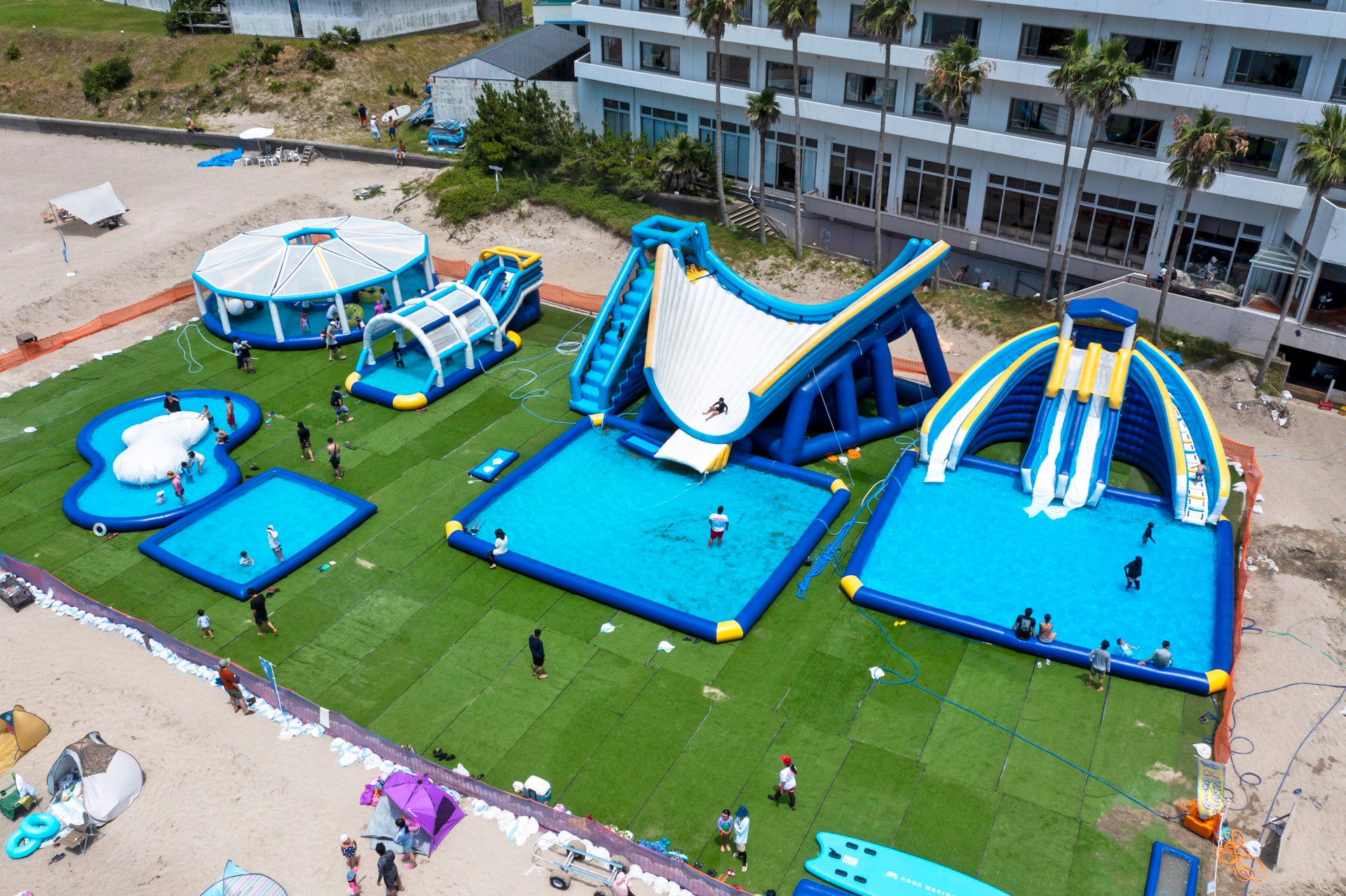 ホテル前の海・浜辺には、巨大アトラクションを設置。