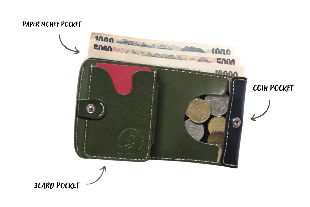 革の王様「ブライドルレザー」でつくった大人のためのミニマルな革財布。中のパーツには国産最高峰栃木レザーを使用し、小さいふ専門店の革職人がハンドメイド。