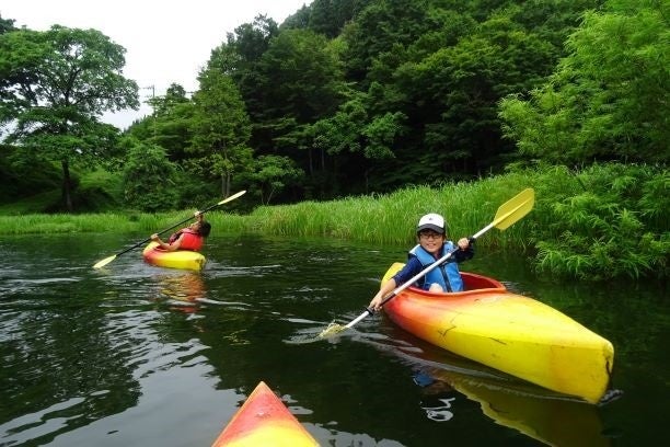 緑豊かな自然を眺めながら、大きな池の中でゆったりカヌーを楽しんでいただけます。流れが緩やかなので、初心者でも安心してカヌーに乗っていただく事ができます。