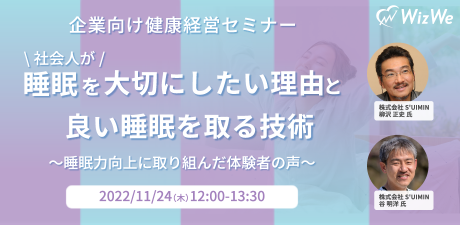 <企業向け健康経営セミナー>社会人が睡眠を大切にしたい理由と良い睡眠をとる技術~睡眠力向上に取り組んだ体験者の声~
