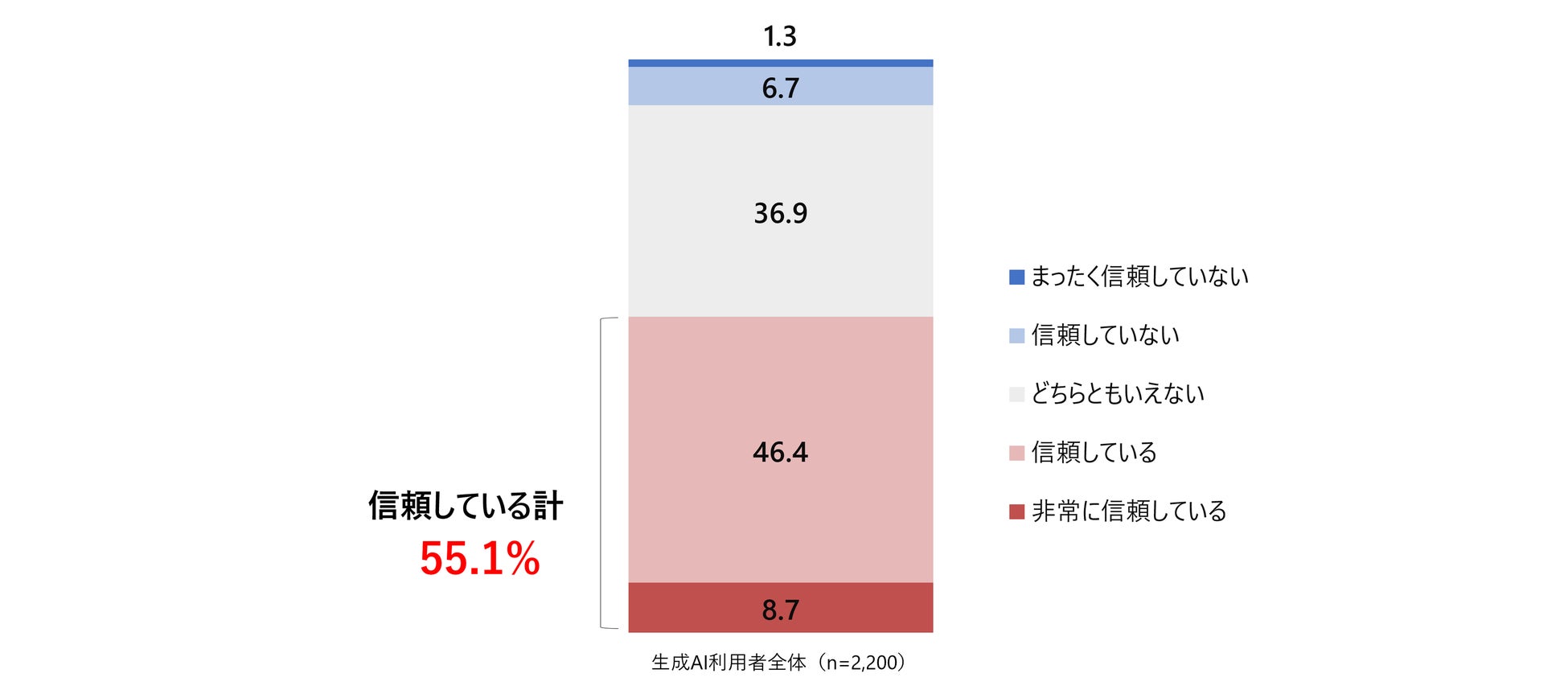 ■「生成AIの情報を信頼している」利用者が55.1%。
