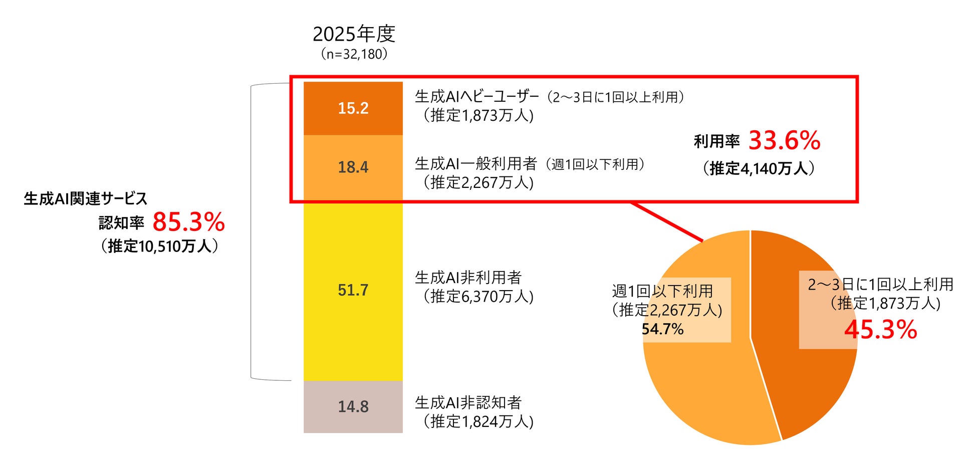 生成AI利用者は全体の33.6%。推定4,140万人が利用