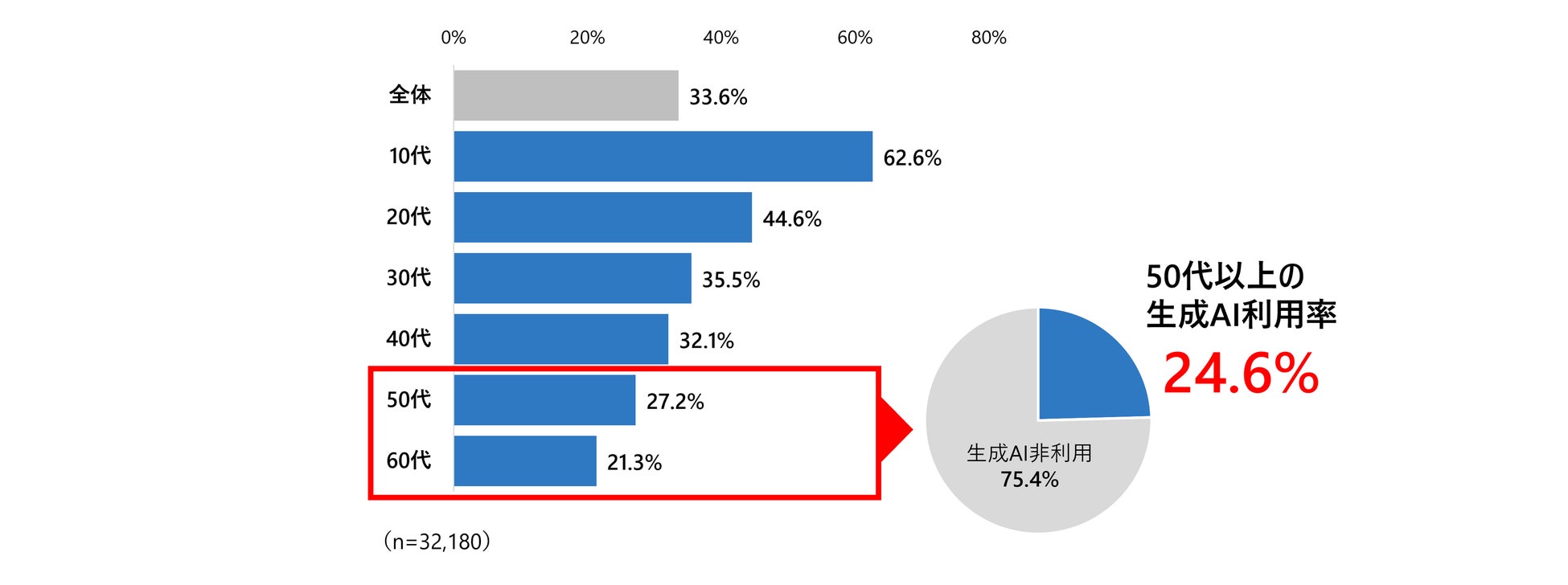 10代の62.6%が生成AIを利用。50代以上の「4人に1人」が利用