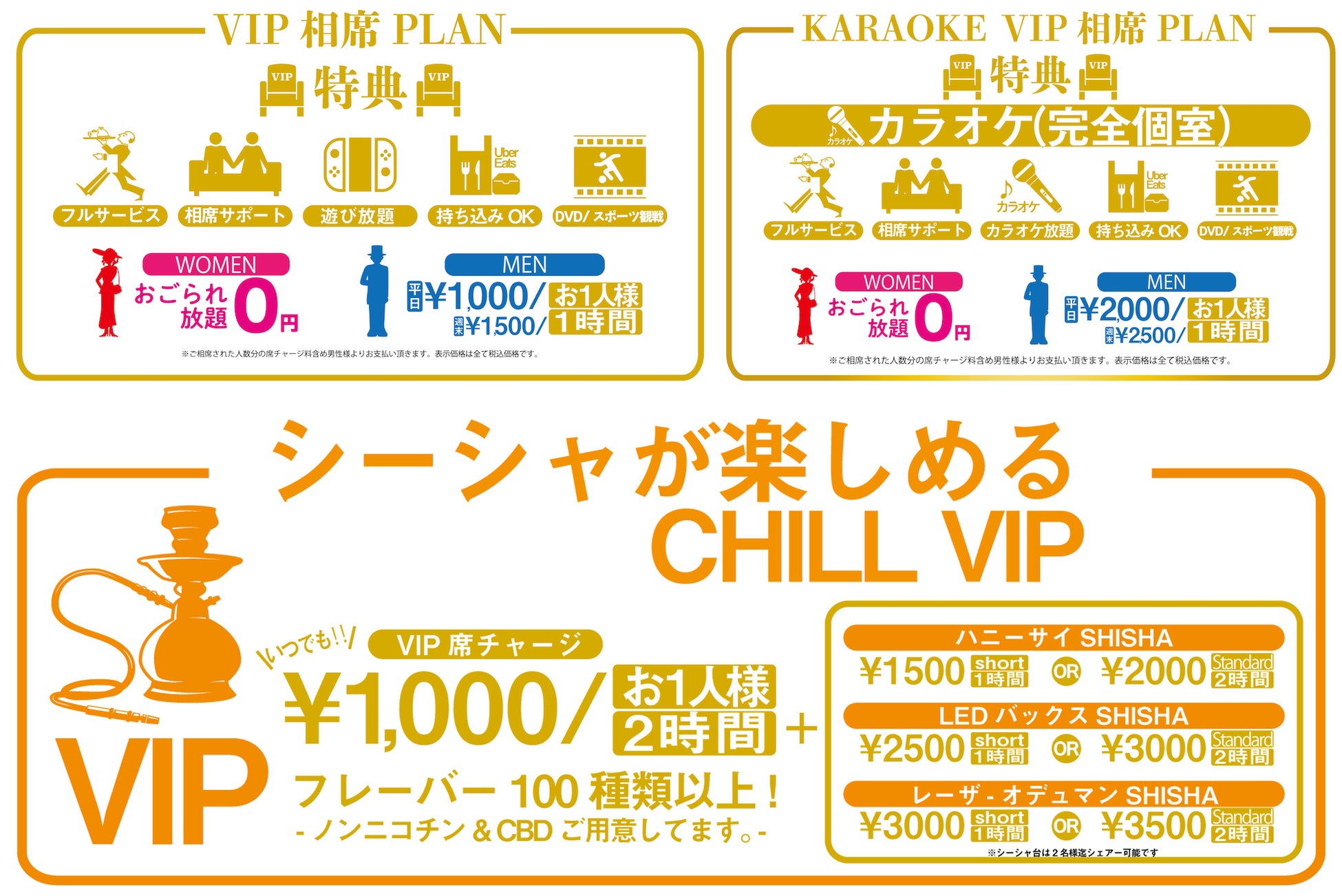 VIPチルプラン ①席チャージ:1,000円/お一人様・2時間