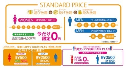 女性:通常1,000円→早得500円→事前予約で0円 ※期間限定