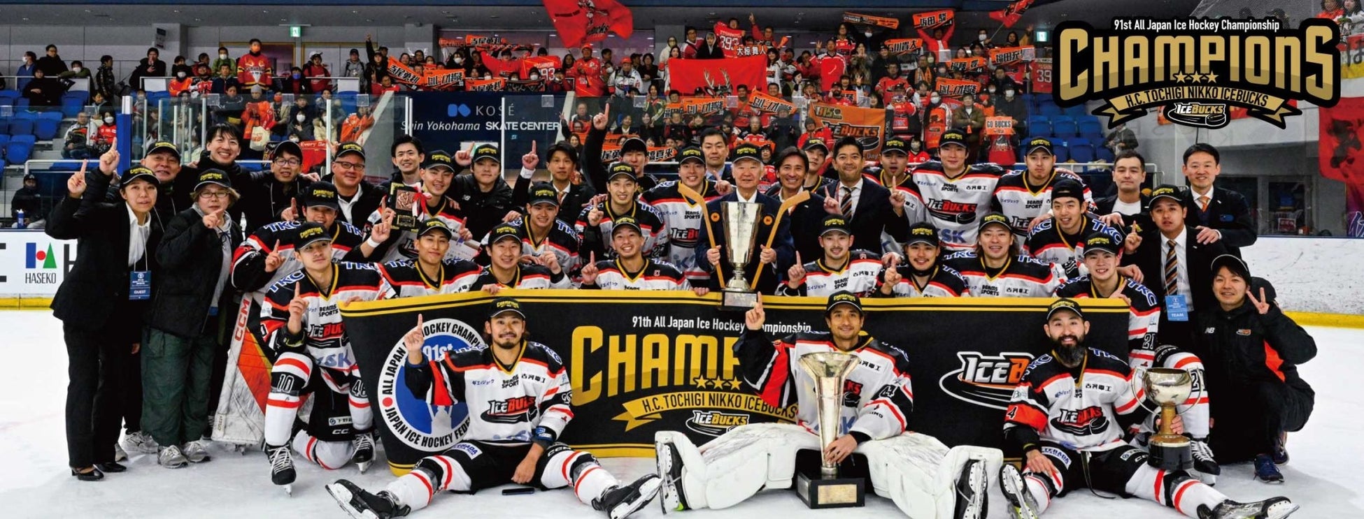2023年12月7日(木)〜10日(日)の期間、神奈川県横浜市にて行われた「第91回 全日本アイスホッケー選手権大会(A)」において、H.C.栃木日光アイスバックスは、皆様の熱い応援のおかげで優勝を果たし、4年ぶりの栄冠を勝ち取ることができました。