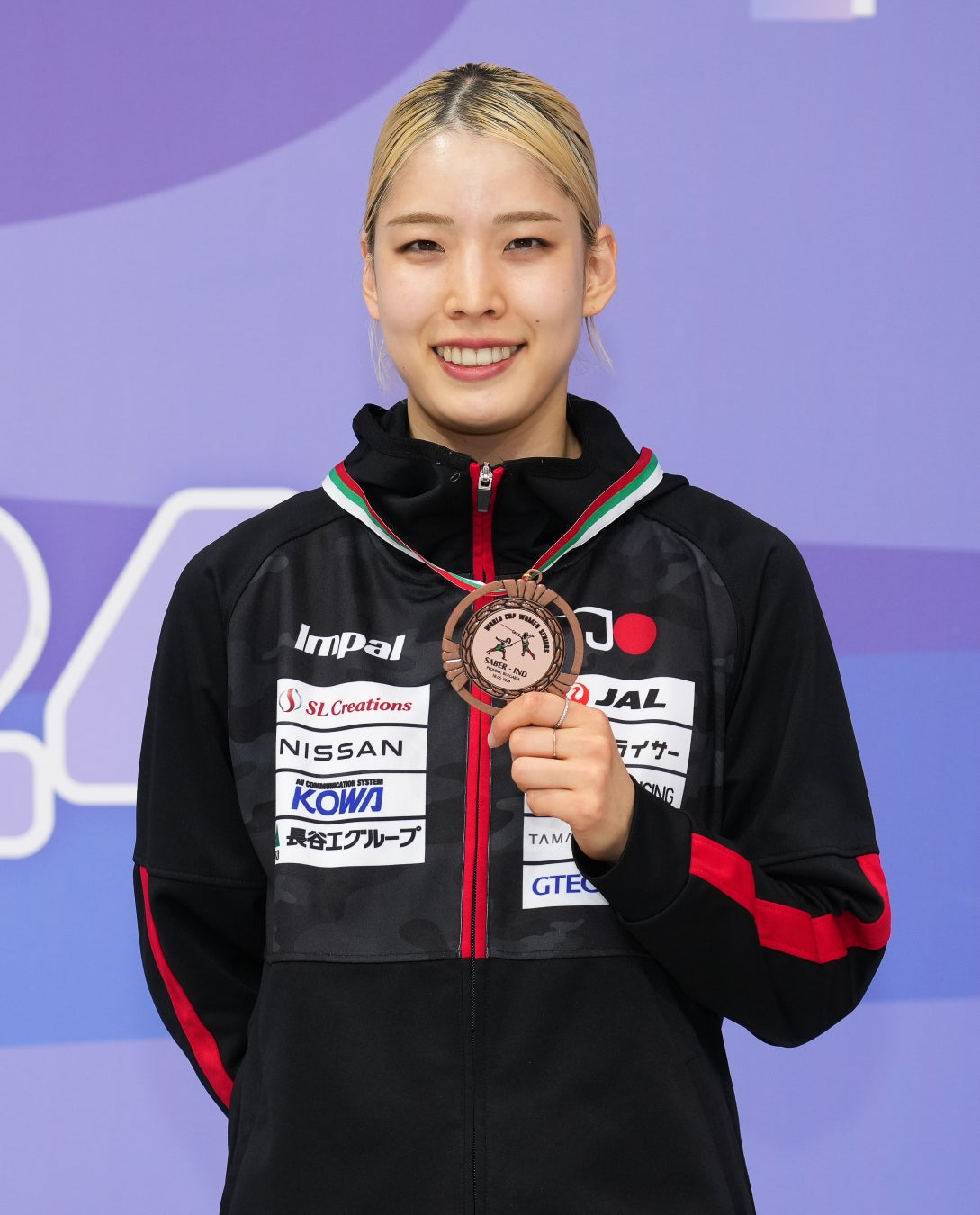 表彰式でメダルを手に🥉笑顔の江村美咲🍀