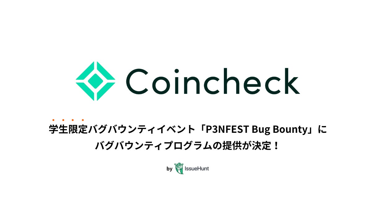 IssueHunt株式会社主催、学生向けバグバウンティイベント「P3NFEST Bug Bounty 」、参加企業であるコインチェックが提供するバグバウンティプログラムが決定