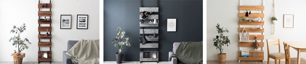 「壁を傷つけずにお気に入りのものを素敵に飾りたい…」自分好みにアレンジできる突っ張り式ウォールラック発売!