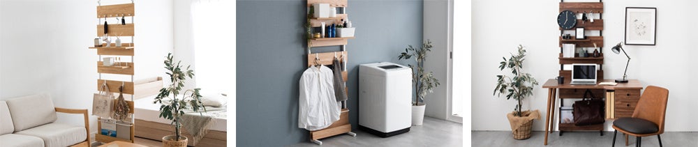 また、お部屋の壁に沿って設置できるだけでなく、間仕切りやディスプレイラックとしてリビングやベッドルーム、キッチンなど様々なお部屋の収納棚として活用できます。
