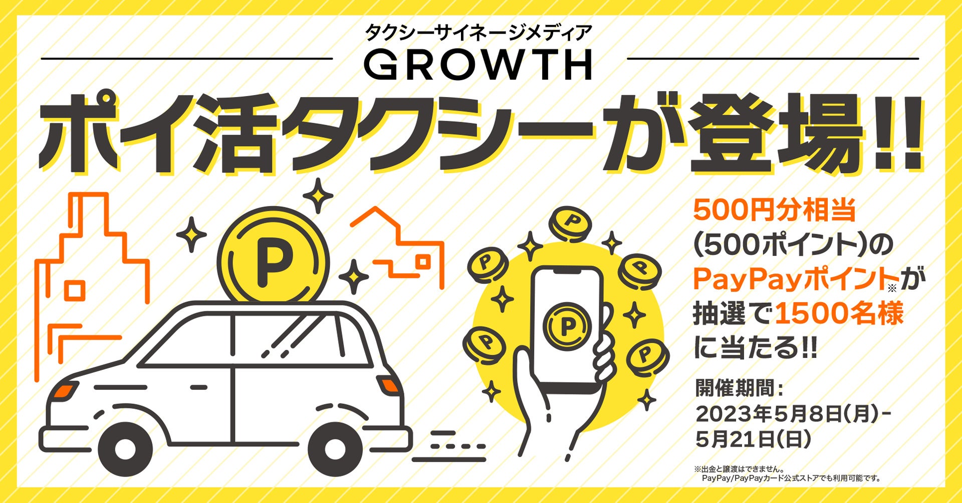 そのような背景において、今回実施する「タクシーでポイ活キャンペーン」では、PayPayポイントと連携し、タクシー利用者に向けた還元キャンペーンを実施します。