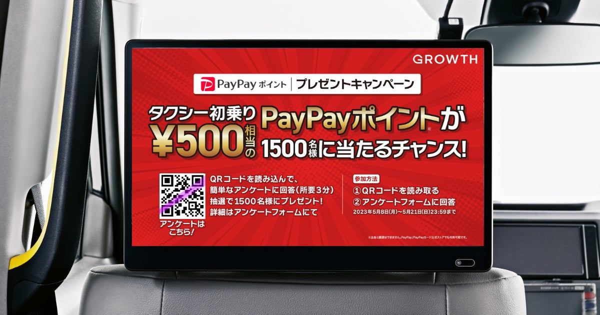 PayPayポイントと連携し、アンケート回答で初乗り500円相当のポイントを抽選で1500名様にプレゼント