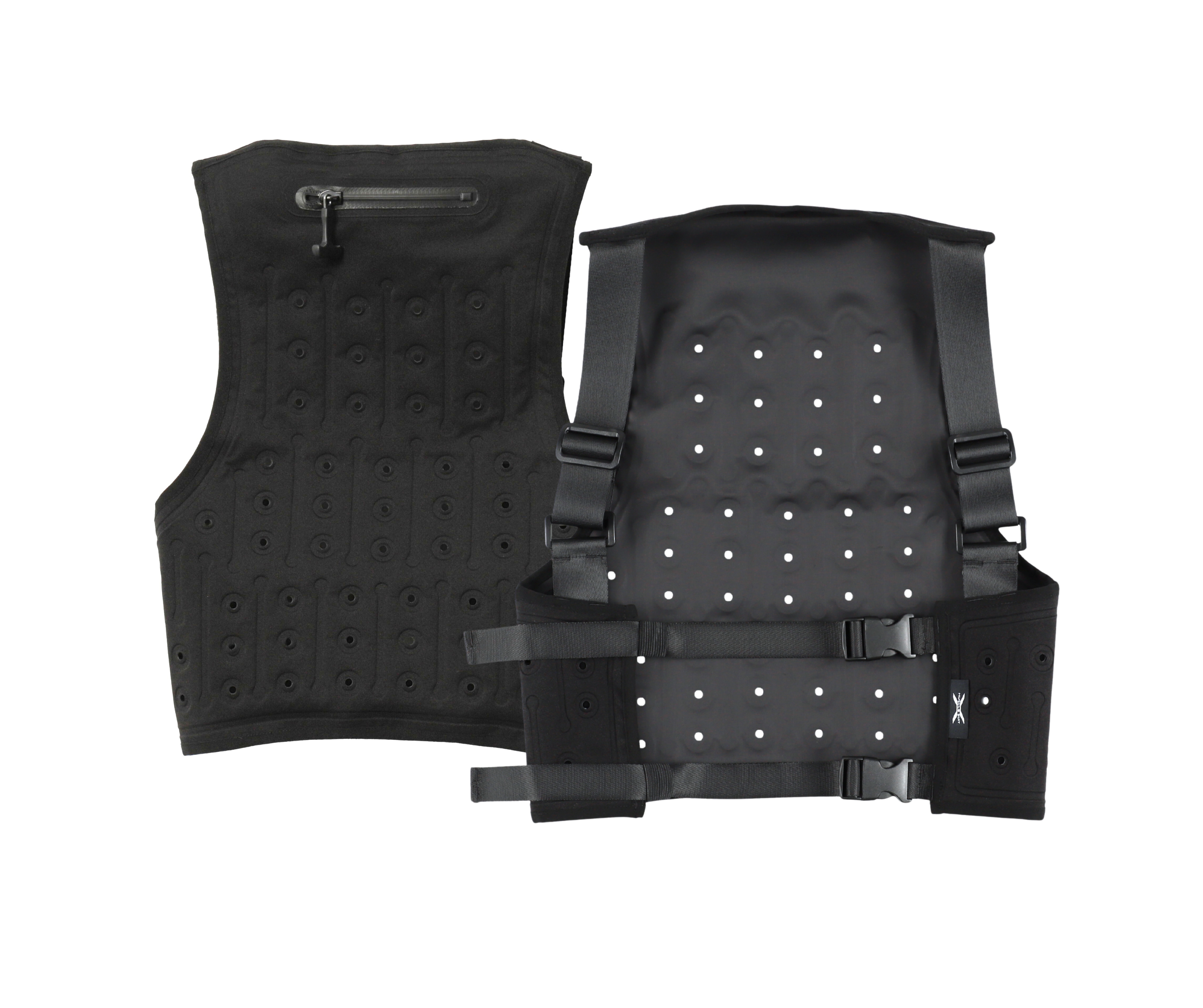 バッテリーや保冷剤がなくても水だけで冷却し、繰り返し使うことができる気化熱タイプのベストです。背中と脇が一体型になっており、脇まで水が行き渡りつつ、お腹は冷やさない設計。圧着点が多く蒸れにくい仕様で、通気性が高く軽量なため、着心地も快適です。中綿のない構造で乾きやすく、水の排出もしやすく衛生的に使用できます。着丈・身幅を調整可能なベルトとスライドバックル付き。ファン付きウェアのアンダーとしても着ることができます。