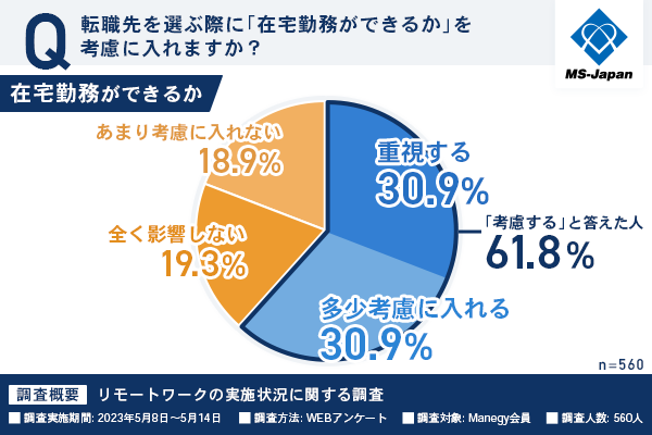 全体の61.8%の人々が、在宅勤務ができることを転職先に求めていることがわかりました。
