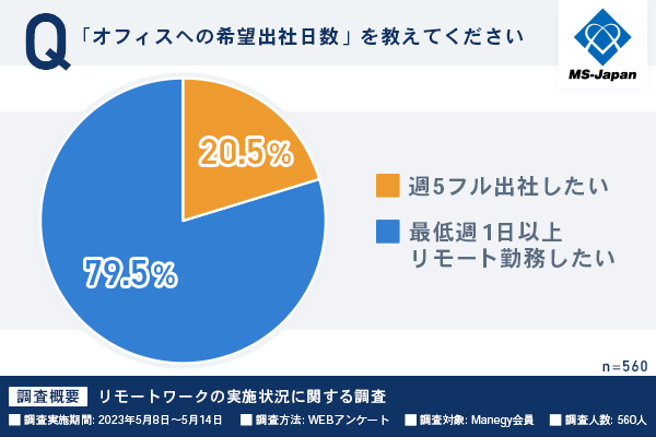 約7割が「週4日以上出社」。【在宅勤務の実態調査2023】を発表。管理部門と士業の専門サイト「Manegy」運営のMS-Japanが560人に調査