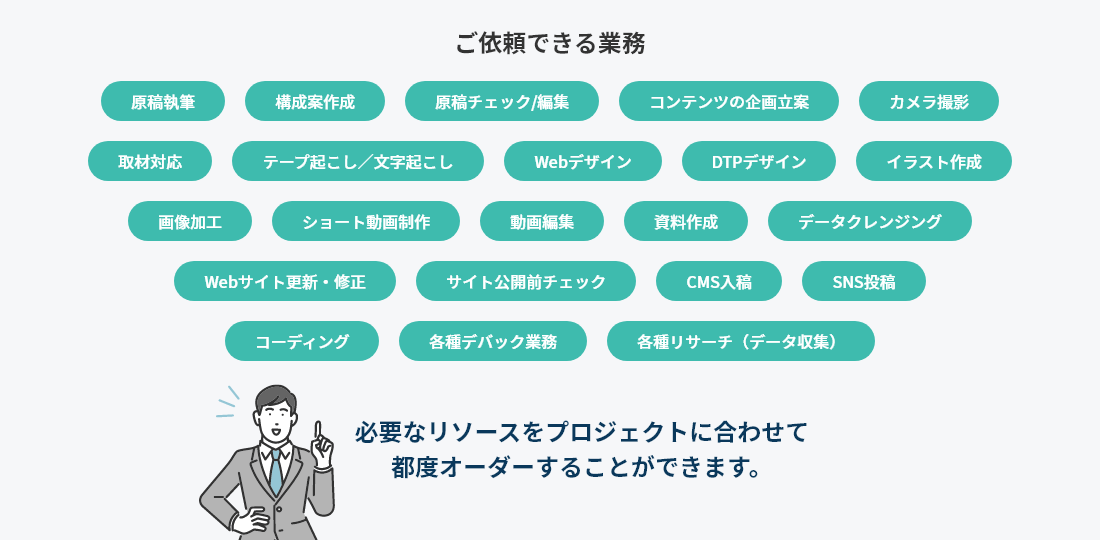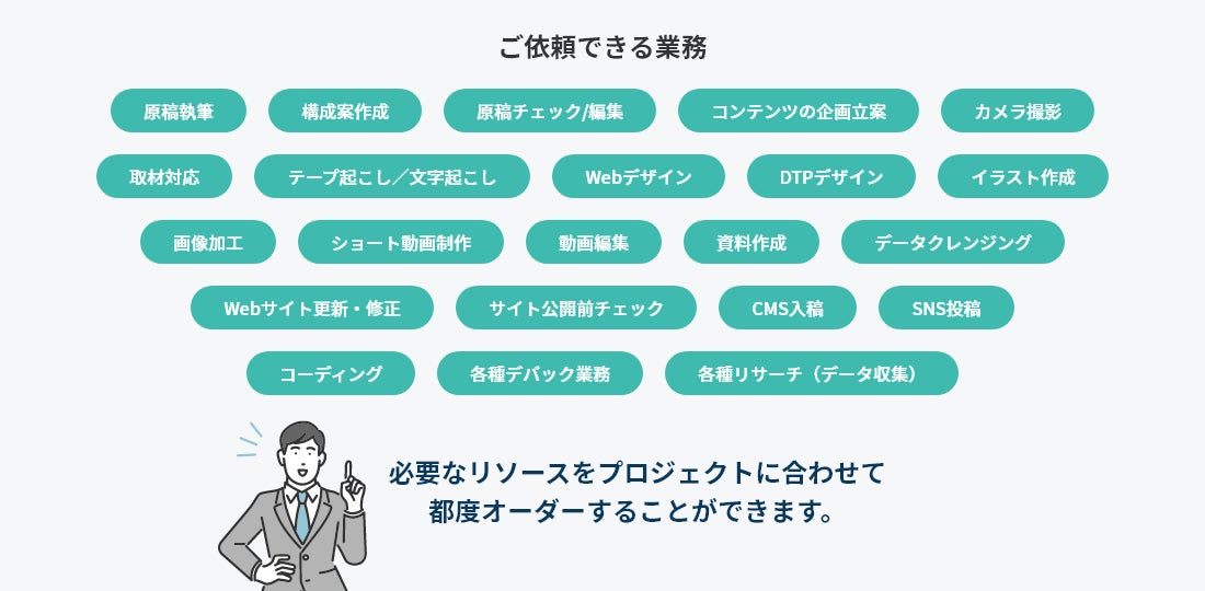 (3)月の契約作業時間内で様々な種類の業務を依頼可能
