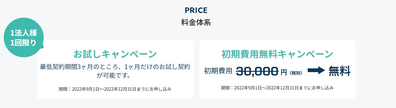 初期費用無料/単月契約が可能になるモニターキャンペーンを実施