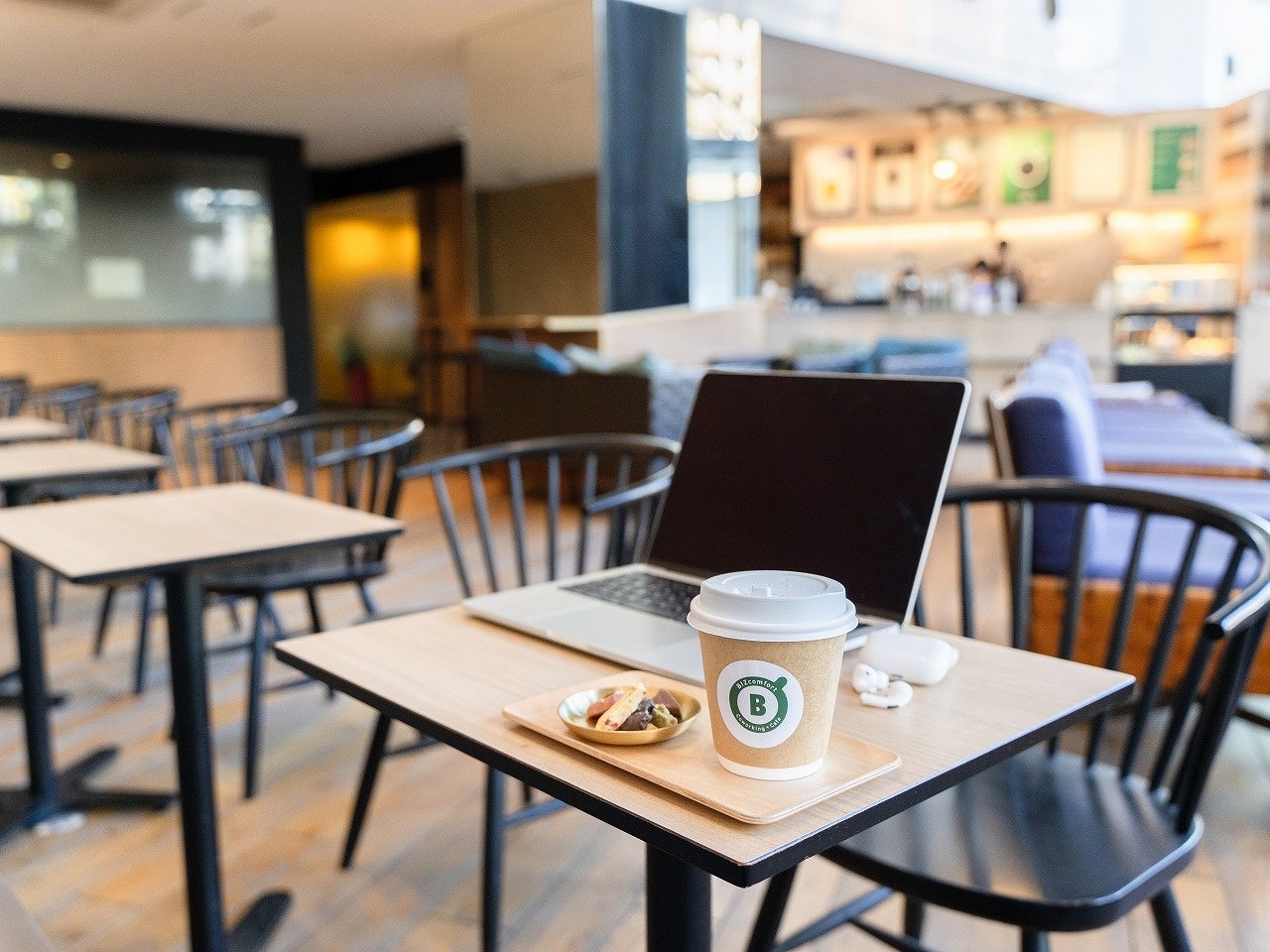 BIZcomfort Cafeオリジナルのブレンドコーヒーや、環境や健康に配慮したオリジナルスイーツを提供