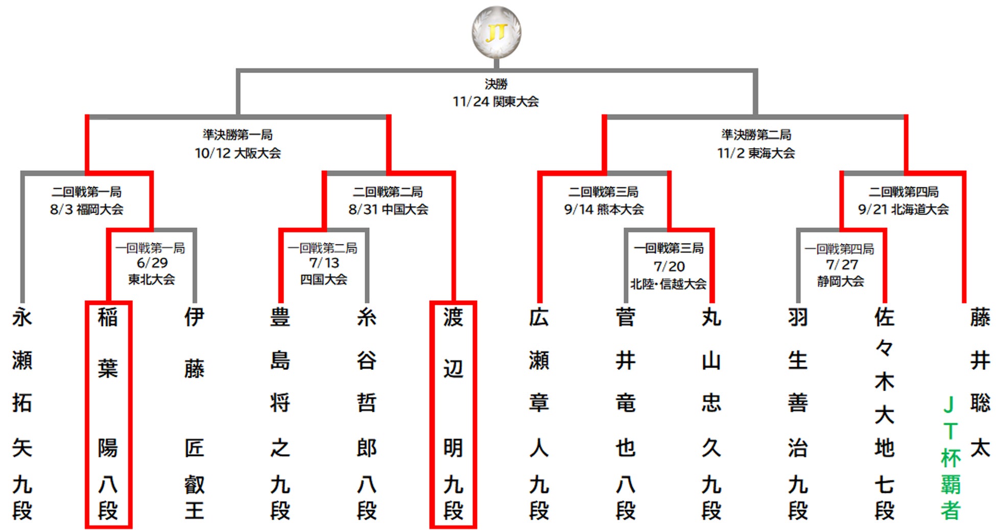 「将棋日本シリーズ JTプロ公式戦」(以下「JT杯」)準決勝第一局(大阪大会)は二回戦第二局で豊島将之九段を破った渡辺明九段と二回戦第一局で永瀬拓矢九段を破った稲葉陽八段が対局。大阪府大阪市のAsueアリーナ大阪で開催される。事前申し込みにて当選した観戦者や同会場で開催される「テーブルマークこども大会」参加者の目の前で、公開対局として熱戦が繰り広げられる。また、その模様は15時55分からABEMAでも生中継される。
