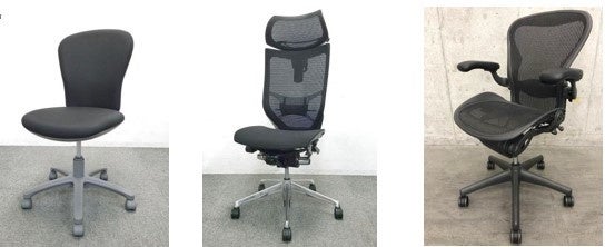 左から:レグノチェア2/コクヨ バロンチェア/オカムラ アーロンチェア/ハーマンミラー