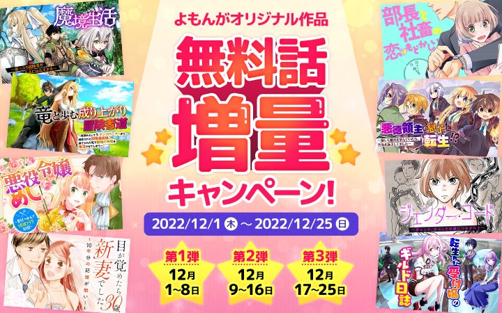 「マンガよもんが」では2022年12月1日(木)からクリスマスまでの25日間、選りすぐりのオリジナル作品を無料話増量でお届けします!