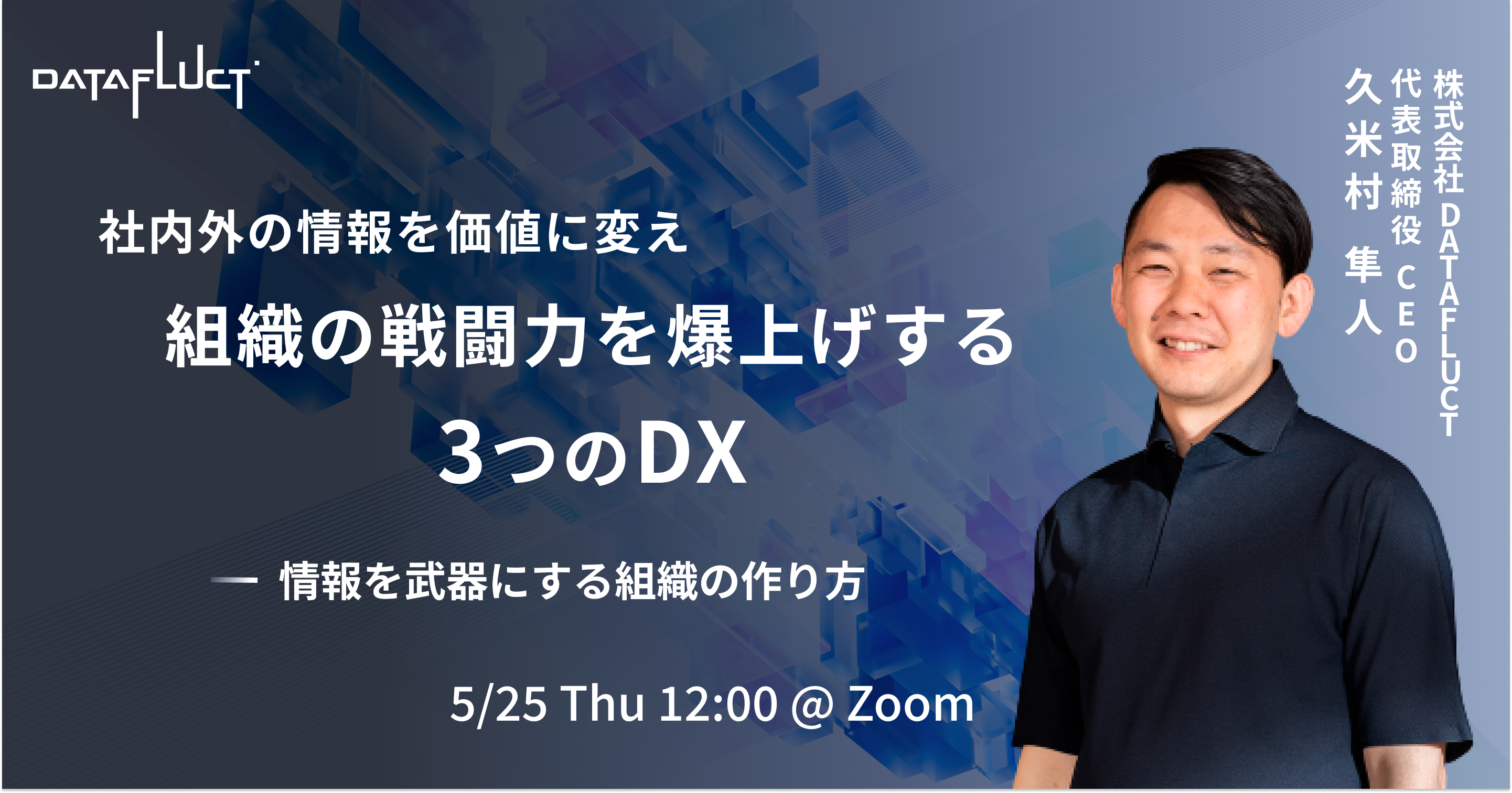 DATAFLUCT、無料ウェビナー「社内外の情報を価値に変え、組織の戦闘力を爆上げする3つのDX 〜情報を武器にする組織の作り方〜」を開催 5月25日(木)12:00-13:00