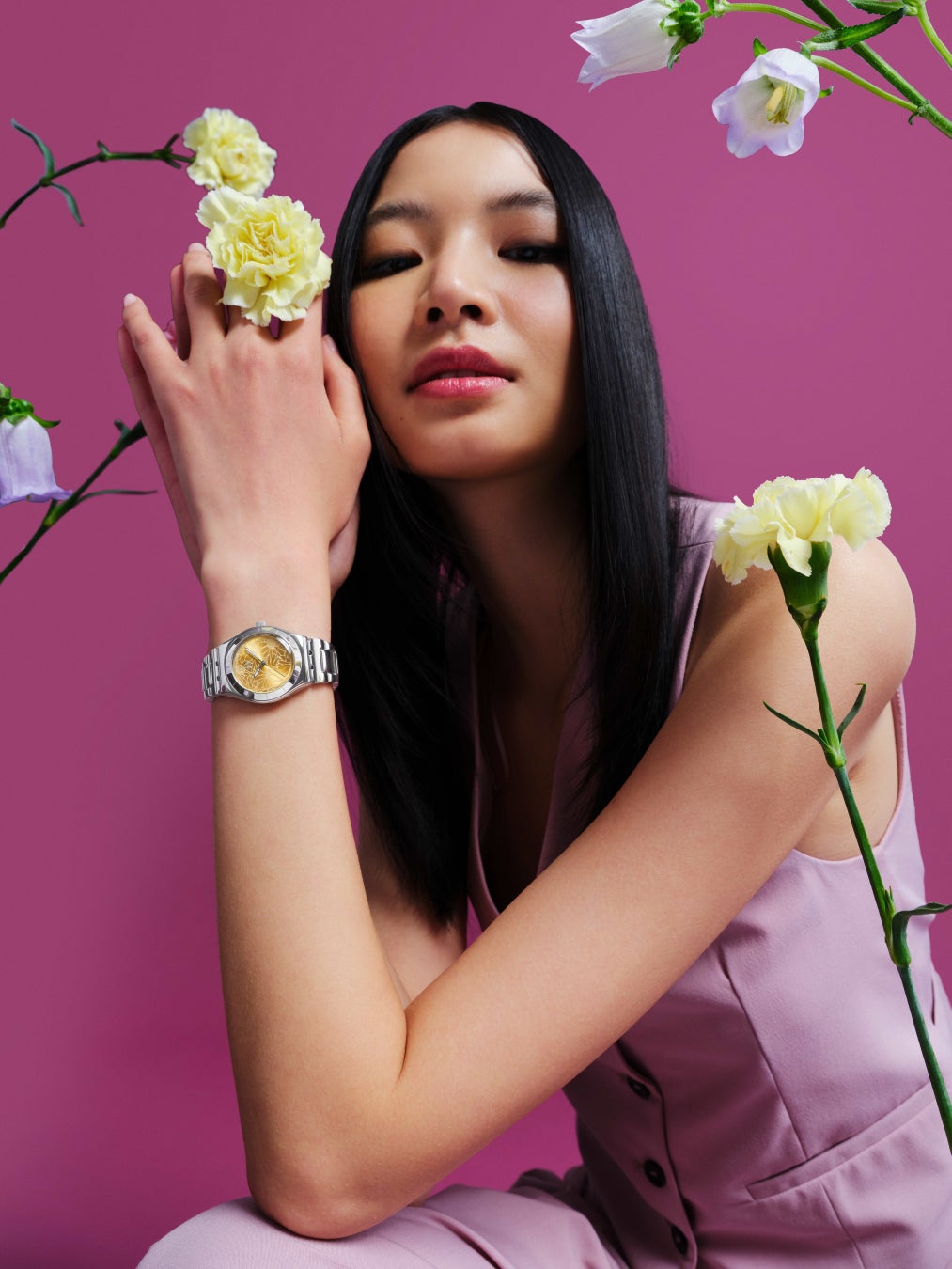 ドレスアップもドレスダウンもかなうこの防水機能を備えたウォッチは、どんな花束にも負けない個性的なスタイルと自分らしさをブーケのように美しく表現します。