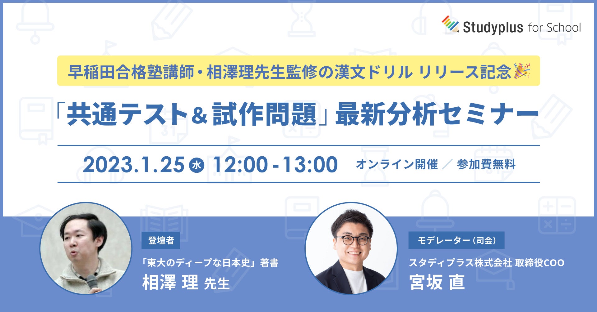 また、本教材のリリースを記念して、2023年1月25日(水)には、相澤先生による『「共通テスト&試作問題」最新分析セミナー』をオンライン開催します。