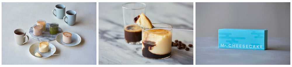 カップタイプのチーズケーキ「Mr. CHEESECAKE Petit / S」では、羽田空港限定フレーバーとして「Affogato」を新たに開発。バニラとコーヒーの香りを移した優しい味わいのチーズケーキに、甘味と苦味の絶妙なバランスを楽しめるコーヒージュレが混ざり合うことで、アフォガートらしい奥深い味わいをご堪能いただけます。本商品は単品でご購入いただけるほか、3種のセット商品もご用意しました。