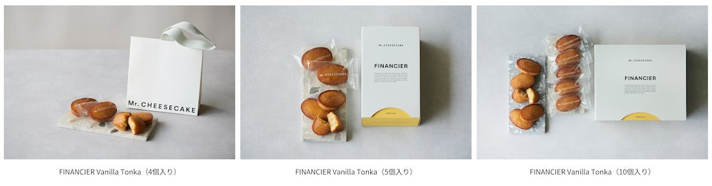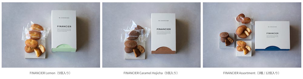 ・FINANCIER Vanilla Tonka(5個入り)、FINANCIER Lemon(5個入り)、FINANCIER Caramel Hojicha(5個入り):¥1,998(税込)