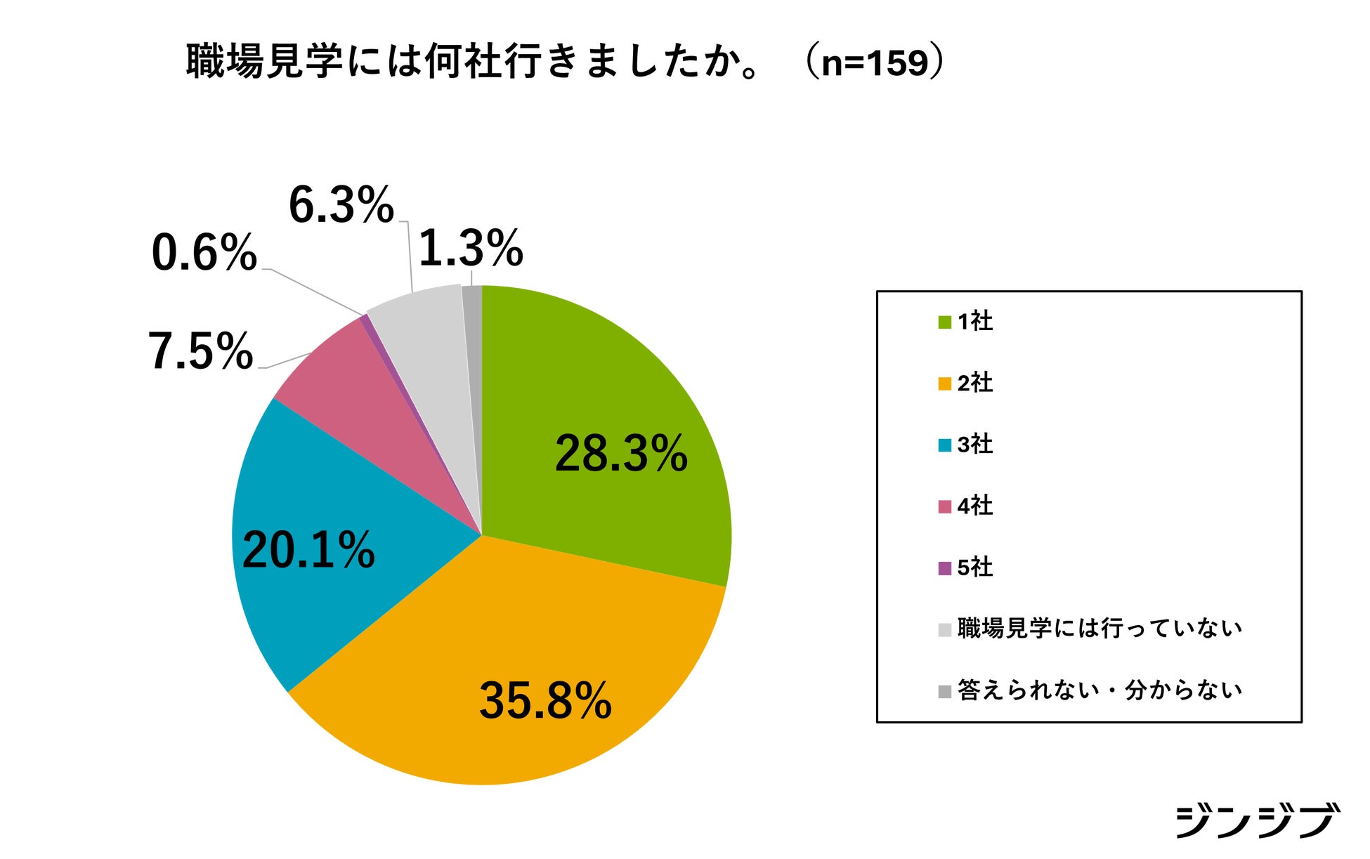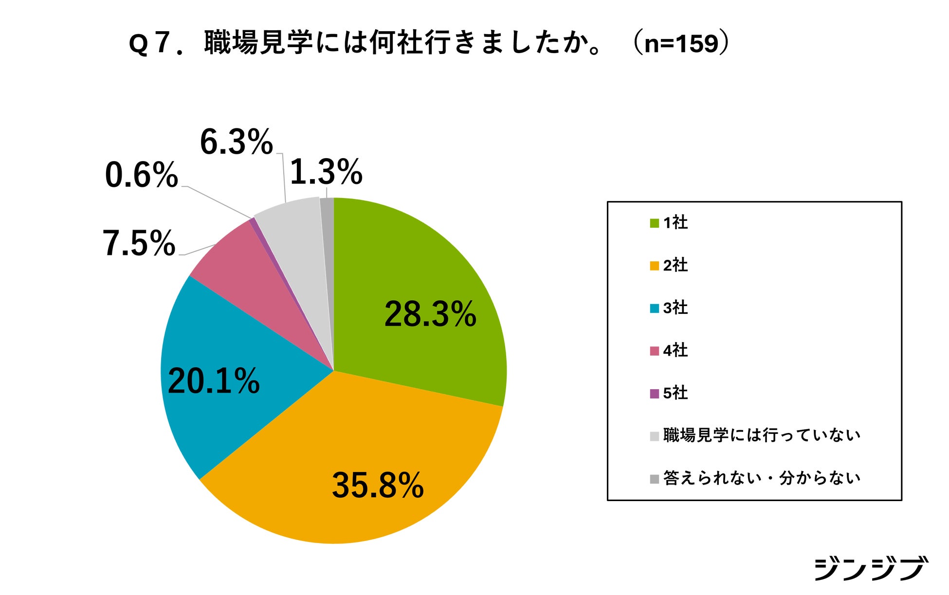 職場見学に行った社数の上位は「2社(35.8%)」が最も多く、昨年から6.2ポイント増