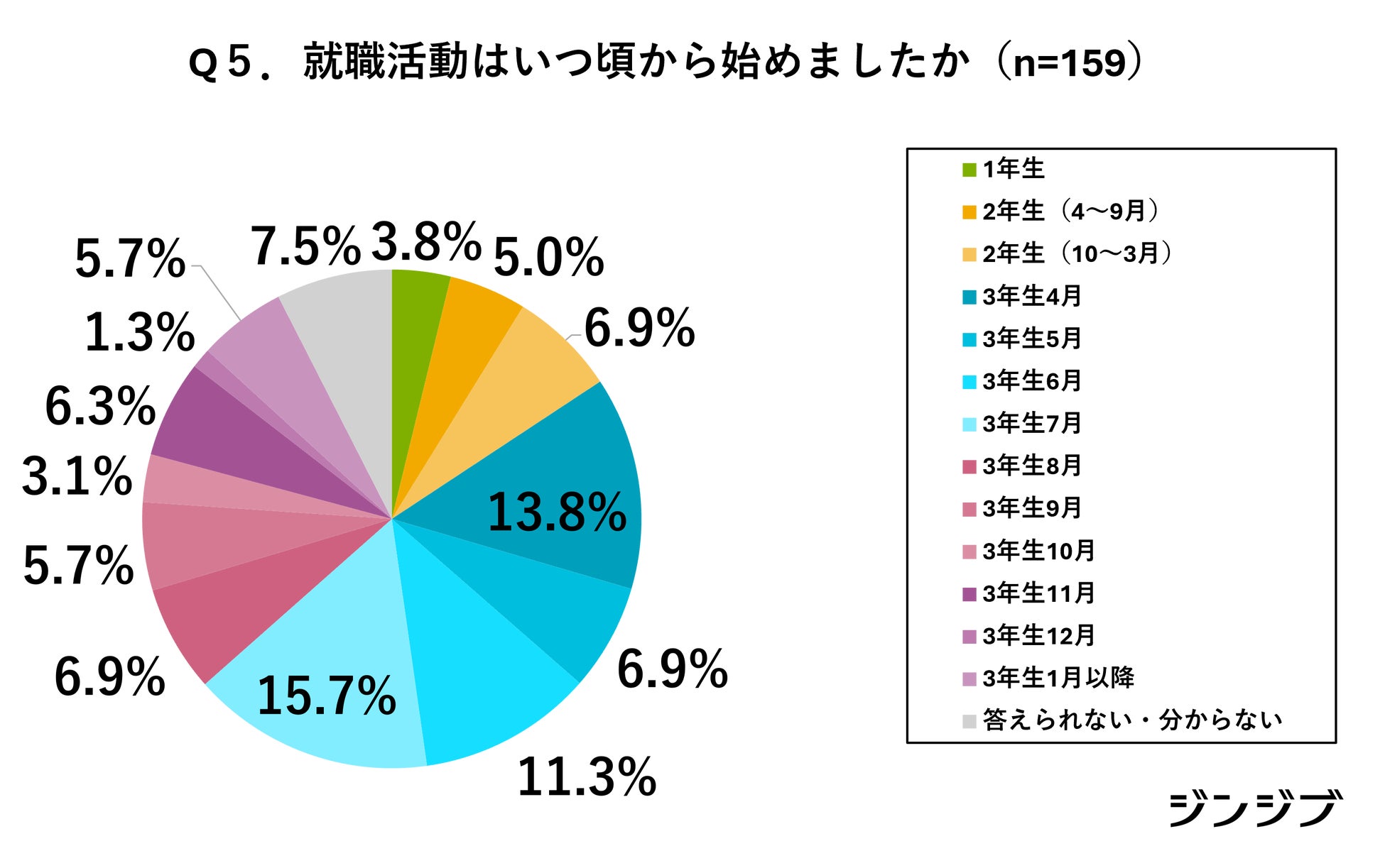 5.就職活動はいつ頃から始めましたか。(n=159)