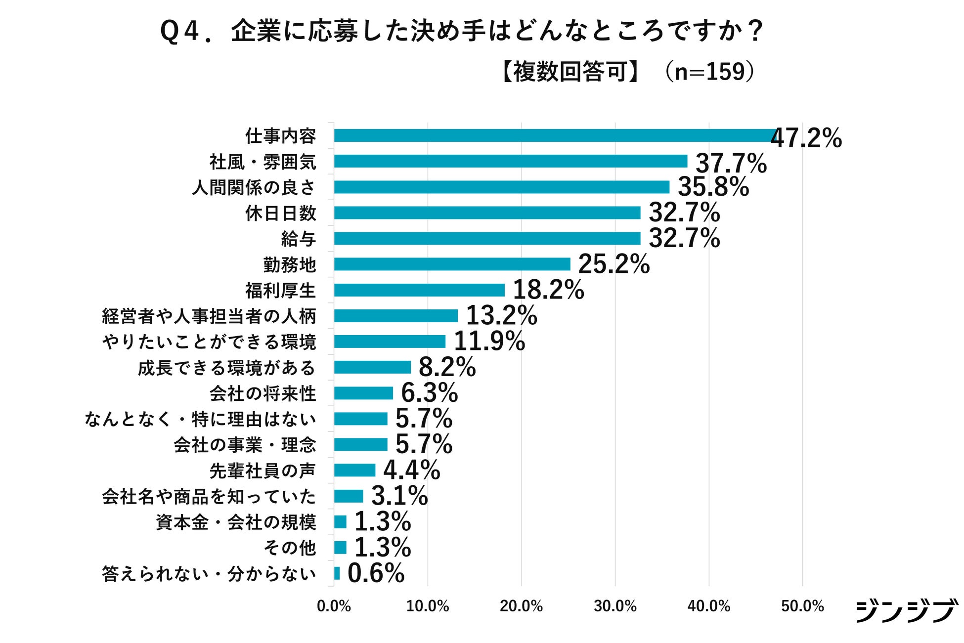 4.企業に応募した決め手はどんなところですか。※複数回答可(n=159)