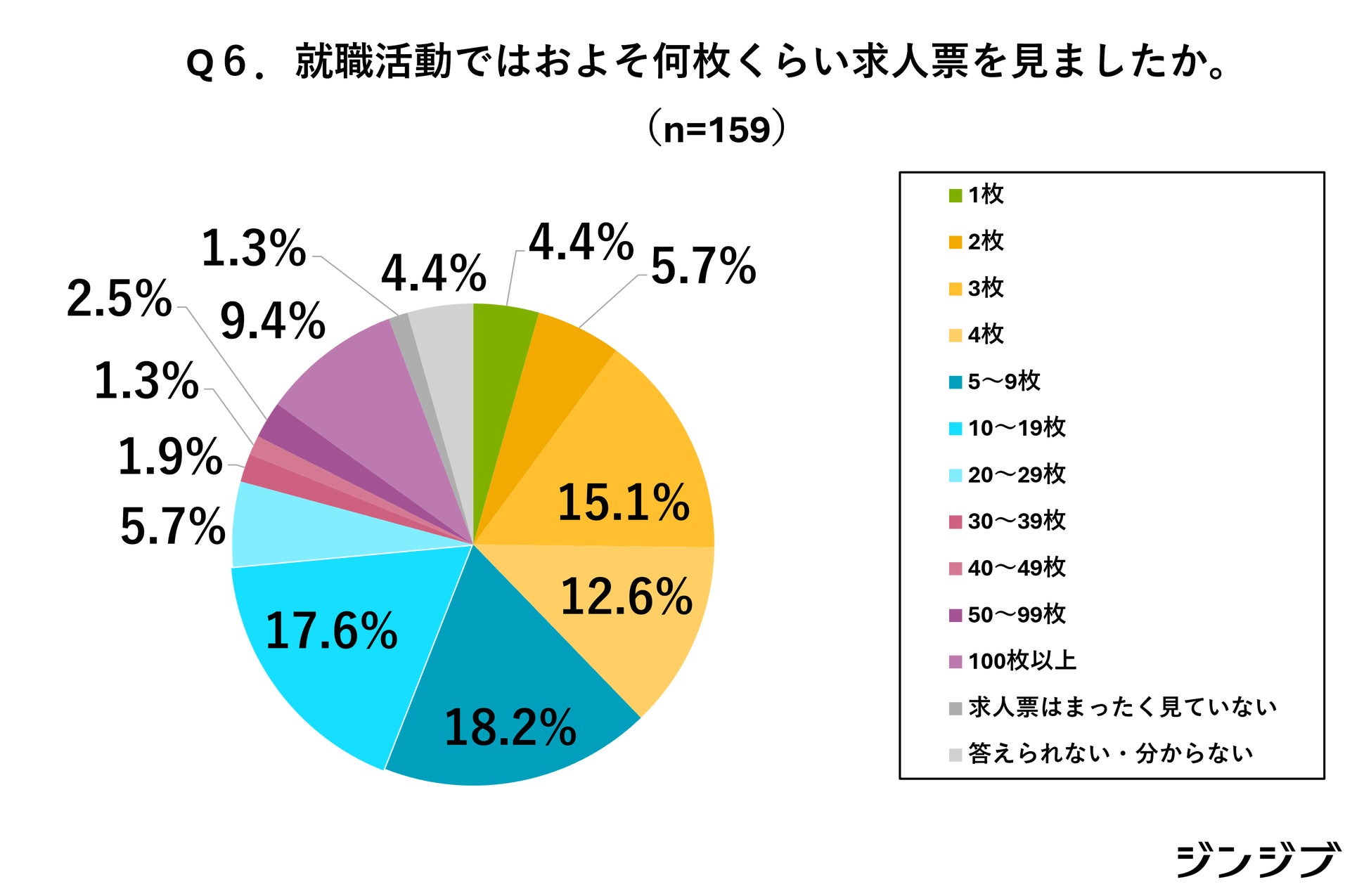 6.就職活動ではおよそ何枚くらい求人票をみましたか。(n=159)