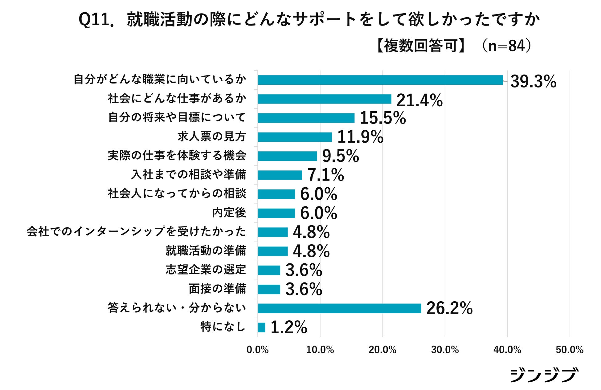 11.就職活動の際にどんなサポートをして欲しかったですか。 ※複数回答可(n=84)
