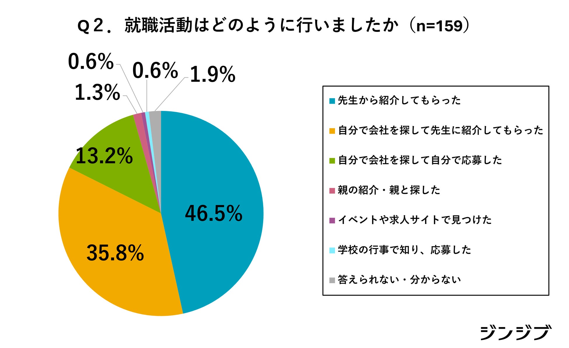 就職活動の方法は「先生から紹介してもらった(46.5%)」と依然として多い